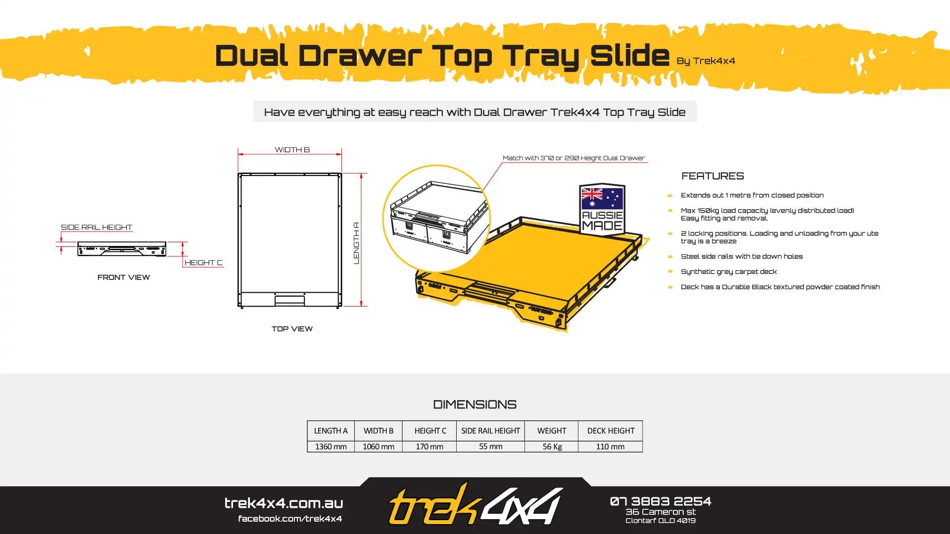 Loading and unloading from your ute tray is a breeze with the Trek 4×4 Dual Drawer Top Slide. Your Dual Drawer Top Slide will bring everything into easy reach, with its roller system you can load and unload with ease. Available for Pick-up Dbl-Cabs.